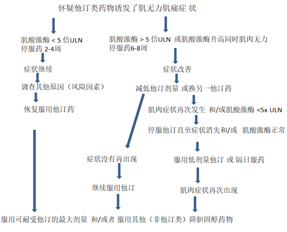 当出现他汀类药物相关的肌肉症状时,有几种大同小异的继续他汀类药物治疗的流程。在这一文章结束后,转载了其中一种较易行的流程法。